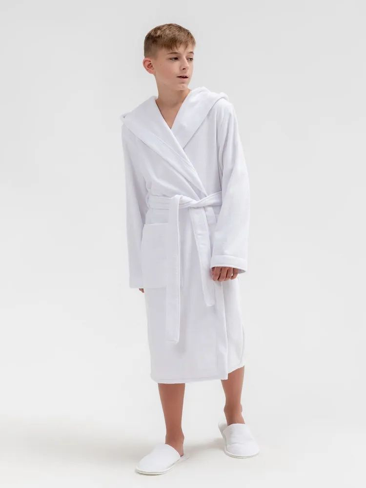 Подростковый классический махровый халат с капюшоном (Белый) на сайте имеется разных цветов, материалов и параметров. Купить продукцию не составит большого труда!